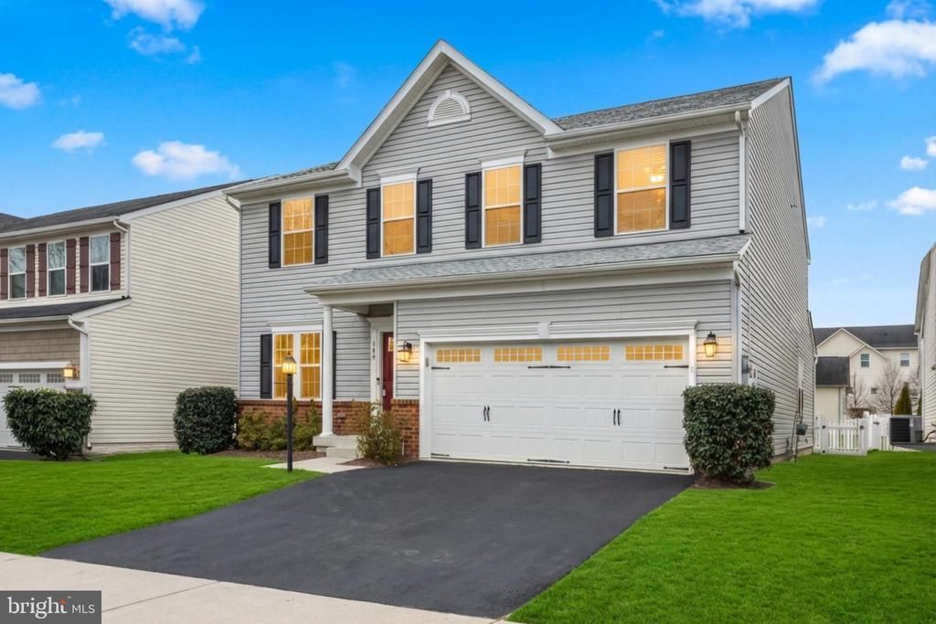 So many upgrades! Freshly painted! New Roof in 2024! New Furnace in 2024. Tankless Hot Water Heater in 2023. Range/oven can be gas or electric! Solar Panels installed in 2024 = no electric bill! A $25k upgrade, yours at no extra cost! The main level features beautiful hardwood floors and a thoughtfully designed layout. You'll find a dedicated office space, a separate formal dining room, and a spacious living room centered around a cozy fireplace. The kitchen is equipped with stainless steel appliances, a gas range, a large island, and ceramic tile flooring, and connects to a light-filled morning/breakfast room that leads to the backyard. A convenient powder room is also located on this level. Upstairs, the upper level offers luxury vinyl plank flooring throughout. The large primary suite includes two walk-in closets and an en-suite bathroom with a soaking tub and a separate shower. This level also has three additional generous bedrooms, a second full bathroom, and a dedicated laundry room. The finished lower level provides a versatile space with a very large, carpeted rec room, currently set up as a media room and a playroom. The oversized unfinished utility room (upgraded with a tankless gas water heater!) provides ample storage space. Outside, the home has a fully fenced, level backyard featuring a large stone-paved patio, perfect for relaxing or entertaining. Enjoy all the amenities that Snowden Bridge has to offer, including a recreation center with an outdoor pool, indoor tennis and basketball courts, walking trails, playgrounds, and a picnic pavilion. Don't miss the opportunity to own a home with paid-for solar panels that will save you money for years to come!