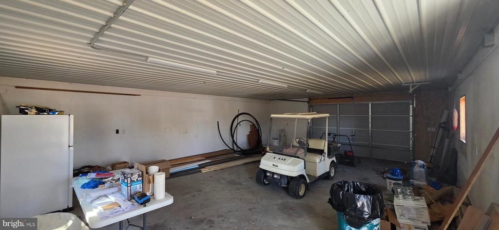 24x32 garage with heat (propane tank needed), electric service and finished at a very high level inside with metal ceilings, drywall and slab concrete floor. This level lot has both public water & sewer hookups, and can be used as-is or improved upon. Verify with town of Mountain Lake Park for costs to connect to water/sewer and any specifics on how the property would transition to a buildable lot for residential.