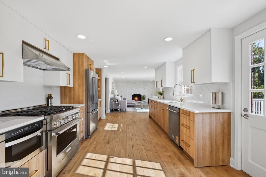 Absolutely stunning, fully renovated and light-filled colonial on a premium corner lot in an unbeatable Potomac location—just minutes to Park Potomac, Pike & Rose, I-270, and more. Showcasing over $300,000 in top-to-bottom renovations, this home offers a rare combination of modern design, open flow, and high-end finishes throughout. The main and upper levels feature wide-plank hardwood flooring throughout. The main level offers an expansive, open-concept layout filled with natural light. A designer kitchen anchors the space with a 36" six-burner gas range, drawer microwave, French door refrigerator, abundant cabinetry, and a large functional layout ideal for both everyday living and entertaining. The kitchen flows seamlessly into a spacious family room with a wood-burning fireplace and direct access to a private backyard with an oversized deck and newly finished patio—perfect for indoor-outdoor living. A large living room, stylish full bath, generous laundry area, and garage access complete the main level. Upstairs, the primary suite offers a true retreat with dual custom walk-in closets and a spa-inspired bath featuring a soaking tub, oversized glass-enclosed shower, dual vanity, and designer tile finishes. Three additional bright and generously sized bedrooms and a beautifully updated hall bath complete the upper level. The fully finished lower level provides a large, versatile recreation space for entertaining! It is bright and complete low-maintenance luxury vinyl plank flooring. A waterproofing system in installed in the lower level. Extensive upgrades include a new architectural shingle roof, windows, HVAC system, water heater, and fully replaced plumbing (including main sewer line). Additional improvements include recessed lighting throughout, new doors, finished garage with new door, French drain and sump pump, waterproofing and mold remediation, and a newly completed patio. This is a rare opportunity to own a thoughtfully redesigned, move-in ready home with both high-end finishes and all system upgrades already completed.