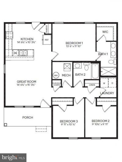 Discover 125 Hobbs Street, a new home soon to be under-construction in the quaint Kinnamon Meadows community of Greensboro, MD. The Curtis is a 1,182 square foot, cottage-style ranch home with three bedrooms, two bathrooms, and a two-car driveway. As you enter the home through the front porch, this thoughtfully designed home has a grand open concept living area that leads into the spacious kitchen. To the right, a long, main hallway allows for the two guest bedrooms and guest bathroom to be separate from the living areas of the home. Along this hallway, you will also find a coat closet, a hall linen closet, and the laundry room. The well-appointed kitchen features an abundance of stylish white cabinetry, granite countertops, stainless steel appliances, a corner pantry and a peninsula island with additional room for seating. The main bedroom is set apart in the back of the home and features a walk-in closet and full bathroom with a double-bowl vanity. The included white blinds and an innovative Smart Home® package will give you complete peace of mind living in your new home. Pictures, artist renderings, photographs, colors, features, and sizes are for illustration purposes only and will vary from the homes as built. Image representative of plan only and may vary as built. Images are of model home and include custom design features that may not be available in other homes. Furnishings and decorative items not included with home purchase.