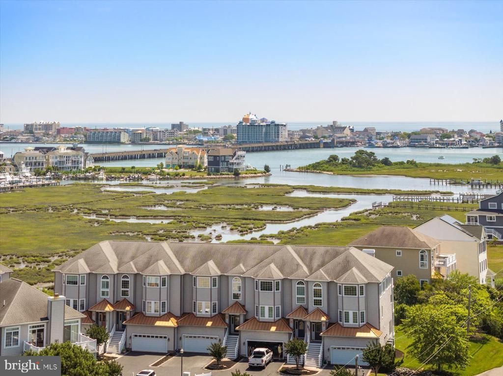 Welcome to Sunrise Cove, a premier waterfront townhouse that offers breathtaking views of the Bay and the Ocean City skyline. Located just steps away from two marinas, this expansive 4-bedroom, 3.5-bath home provides nearly 4,000 sq ft of living space, offering a perfect blend of luxury and convenience. With its spacious floor plan, this home is designed for both comfort and entertaining. The property features a private elevator that services all three floors, making it easy to access each level. The main living area has an open concept layout, with a large kitchen equipped with solid surface countertops, a breakfast nook, and a bar. The expansive living and dining areas are accented with vaulted ceilings and a cozy gas fireplace, perfect for family gatherings. On the first floor, you'll find a self-contained living space with a kitchenette, living room, bedroom, and full bath, ideal for guests or extended family. On the second floor, the master suite is a true retreat, offering a walk-in closet, dual vanities, a separate tub, and shower. Two additional spacious bedrooms share a full bath on this level. The third floor is designed for entertaining, featuring an open floor plan with large windows that flood the space with natural light and provide stunning water views. A wet bar adds to the appeal of this level, making it perfect for hosting friends and family. This home also offers two large water-view balconies, including one on the third floor that is perfect for soaking up the sun while taking in panoramic views of the bay and inlet. The master suite has its own private balcony, adding another 1,000 sq ft of outdoor living space. The property includes a two-car garage, ideal for storing kayaks, bikes, or other outdoor equipment. For boating enthusiasts, there may be dockage available to rent at Ocean City Fishing Center or Sunset Marina, giving you easy access to the water. Located in the heart of West Ocean City, this home is just minutes from the beach, marinas, restaurants, and shops, making it the perfect coastal retreat. Buyers are encouraged to verify square footage, school information, and all other property details. Schedule your private tour today to experience this one-of-a-kind waterfront home!
