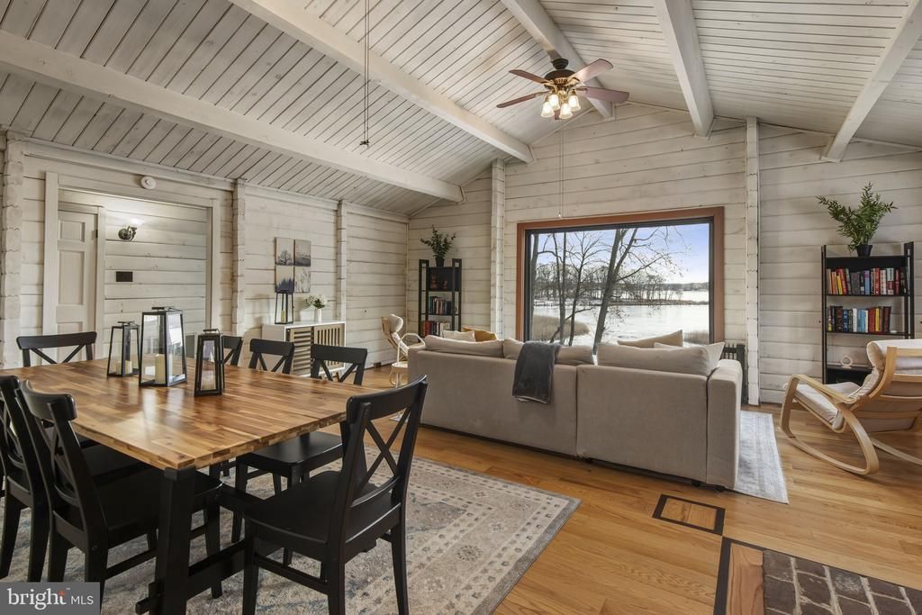 3 Bedroom, 2 Bath waterfront log home on 13.02 private acres with approximately 2,174 total finished square feet, offering a rare blend of rustic character, usable land, and scenic Plum Creek frontage. Set within Woodcrest Shores, this two-level detached home features authentic log siding and log interior walls, complemented by beamed, vaulted, and cathedral ceilings that create a warm, open atmosphere. Hardwood, laminate, and carpet flooring add texture throughout the home, while the partially finished lower level with interior and exterior access provides flexible space for hobbies, storage, or additional living areas. The main level offers comfortable everyday living with spacious gathering areas that flow easily to an outdoor deck overlooking the surrounding natural landscape. A detached two-car garage and extended driveway provide ample parking and practical convenience. With approximately 1,350 feet of creek frontage, the property delivers a unique waterfront setting ideal for enjoying nature, outdoor recreation, and peaceful privacy. Located in Elkton, this home offers a_toggle between tranquil, tucked-away living and accessibility to major commuter routes including I-95 and Route 40, along with nearby marinas, parks, and regional shopping and dining. Woodcrest Shores’ annual HOA adds to the maintained community setting while preserving the natural feel of the area. Whether you’re looking for a distinctive primary residence or a private retreat with water access, this well-maintained log home presents a rare opportunity along Plum Creek.