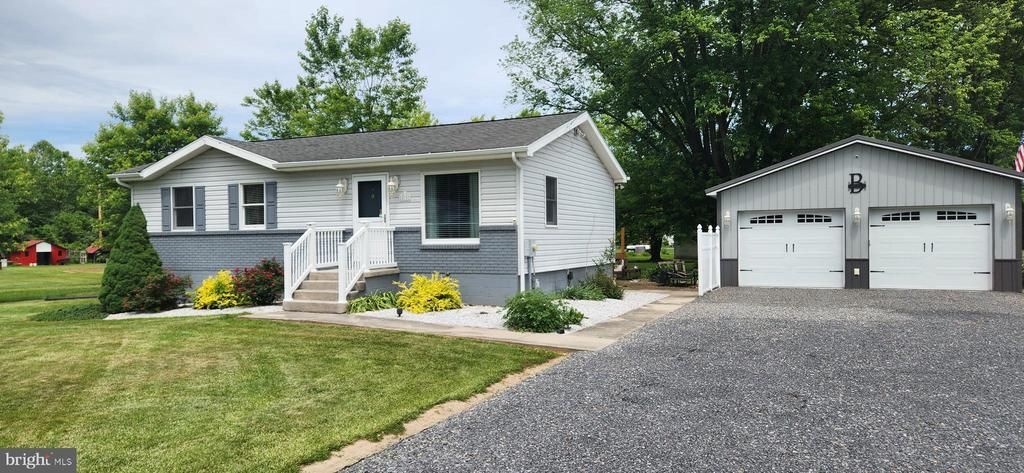 Well maintained rancher on a level, landscaped lot. Oversized two car garage built in 2017. Home has three bedrooms, 2 full baths, and a partially finished basement. The main level bath has a shower you'll surely love! Basement makes an excellent recreation room or the potential for a 4th bedroom. 2nd bath is in the lower level. Lower level also includes a laundry /storage/workroom with outside access. Walk out the sliding glass door from the kitchen onto a new deck to enjoy the outdoor living space. Decking and railing new in 2025. This beautiful property is located outside the city limits (no city taxes), but with public utilities. Minutes away from access to the tow path/C&O canal for biking and walking. Short commute into Cumberland.