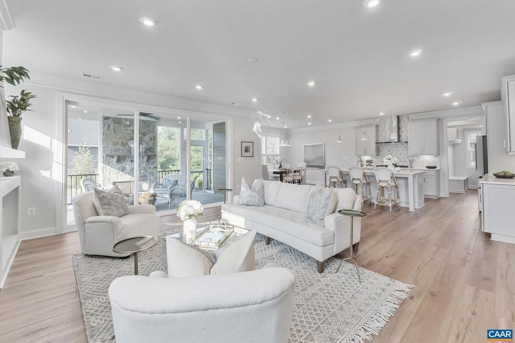 Set on over 1/4 acre, this former model home enjoys a premier corner location buffered by the Rivanna Trail for added privacy and natural beauty. From the mahogany front door to the top-level terrace, every detail reflects thoughtful design and high-end craftsmanship.The open, light-filled main level features wide-plank LVP flooring, a 42? gas fireplace with shiplap and built-ins, a gourmet kitchen with Electrolux appliances, quartz countertops, marble backsplash, soft-close cabinetry with custom pull-outs, and a large walk-in pantry. Step outside to an amazing screened porch with a custom wood-burning stone fireplace?a perfect spot to unwind while enjoying the wooded backdrop and direct trail access. Upstairs, a versatile loft anchors three spacious bedrooms and a luxurious owner?s suite showcasing mountain views and a spa-worthy bath with a freestanding tub, dual vanities with backlit mirrors, a frameless glass shower, and a massive walk-in closet. The top-level loft with terrace adds another inviting space for relaxing or entertaining. From its rare corner lot buffered by nature to its impeccable finishes and flexible layout, this home combines elegance, comfort, and an unbeatable Belvedere.,Painted Cabinets,Quartz Counter,Soapstone Counter,White Cabinets,Exterior Fireplace,Fireplace in Living Room