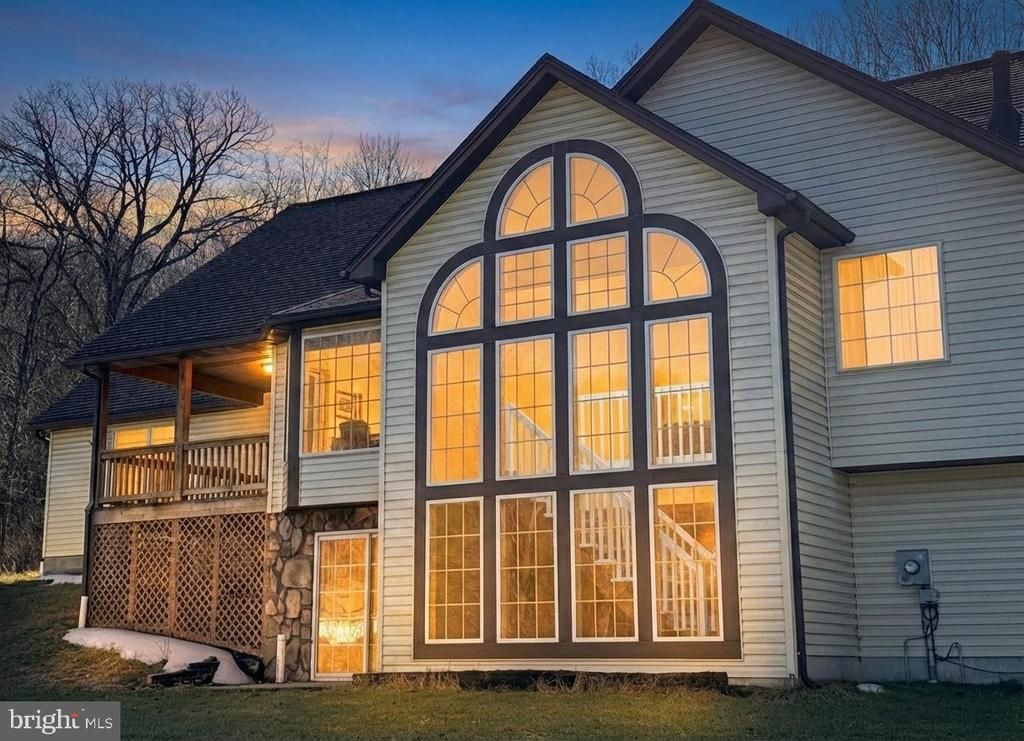 Beautiful contemporary two-story home set on a picturesque 2.5 acre wooded lot with a walk-out lower level. The stunning two-story wall of windows fills the home with natural light and creates a dramatic focal point in the main living area. Featuring multiple gables, an elevated deck, and expansive backyard space, this 3 bedroom, 3 bathroom home offers the perfect blend of architectural character and functionality. The walk-out basement provides additional living or entertaining potential, while the peaceful setting offers privacy and scenic views.Energy-efficient geothermal heating adds comfort and long-term savings. A rare opportunity to own a bright, spacious home in a serene setting with modern efficiency.