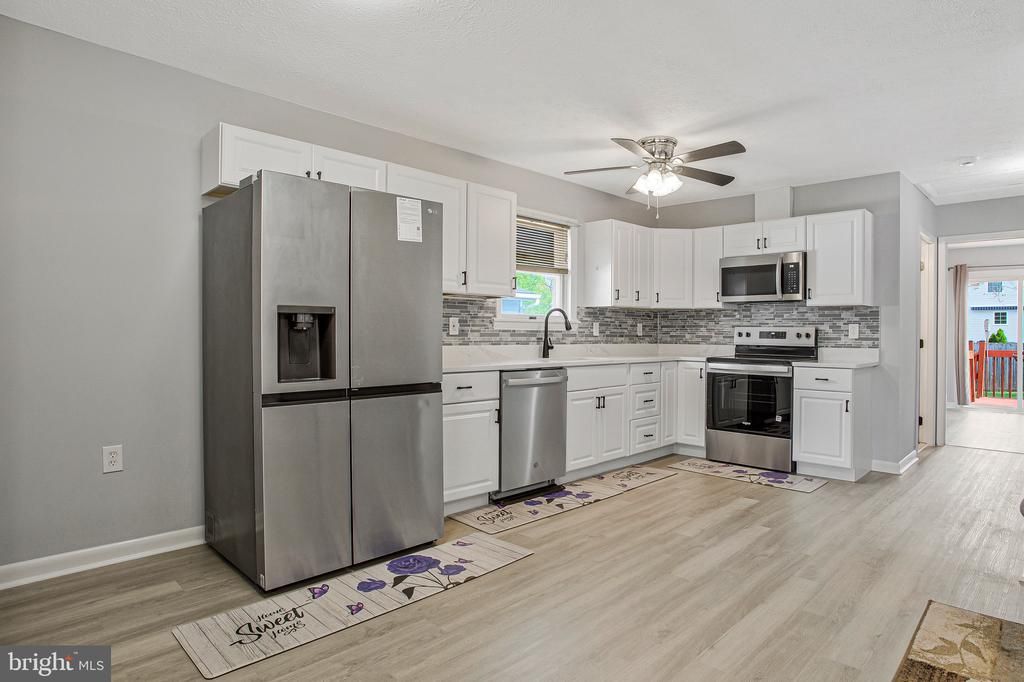 Welcome to this bright, charming home on a quiet dead end street in Glen Burnie Heights. The open floor plan allows for plenty of space to gather friends and family together. The newly renovated kitchen boasts quartz countertops, stainless steel appliances, and plenty of cabinets. The large primary bedroom has plenty of closet space and sliding glass doors to the backyard. The lower level has a huge family room, an updated full bath, and another generously sized bedroom. Great for guests or multigenerational living. Walk out to the fully-fenced, private backyard and enjoy the peaceful quiet on the large deck. There are 2 sheds for extra storage. New flooring upstairs. Fresh paint. All new interior doors and hardware. New front door, storm door and rear entrance door. Newer roof. Updated water line. Carrier HVAC with programmable thermostat.