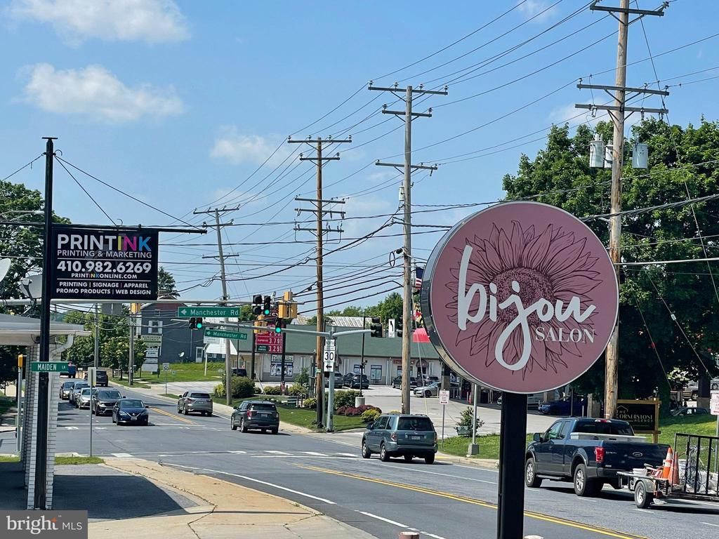 Unique versatile detached commercial building currently rented to an operating salon! Fully permitted gut renovation. Great road frontage at busy intersection including Sheetz and Millers market, lighted building and road signs, 16 parking spaces, high end ERV (Energy recovery ventilator) system, new thermal store front windows, 400 amp electric, designer lighting including recessed, sconces and chandeliers, built-in speakers throughout, two looped water heaters, entry ramp, alarm system, new roof and LVP flooring, The building features an entry area with seating, textured tiled wall, custom display shelving and desk with stone top, remodeled bathroom with herringbone tiled wall, main area with shiplap, custom wall art, shampoo area, drying area, 9 stations, high ceiling and exposed beam, manicure/pedicure area with 2 custom nail stations with ventilation and 2 high end pedicure chairs with shiatsu massage, esthetician/flex room with sink, employee area with washer/dryer, storage and triple sink and a partial basement with storage. This building and business are turn key and one of a kind! Business for sale as well and can be bought together (MDCR2033092).