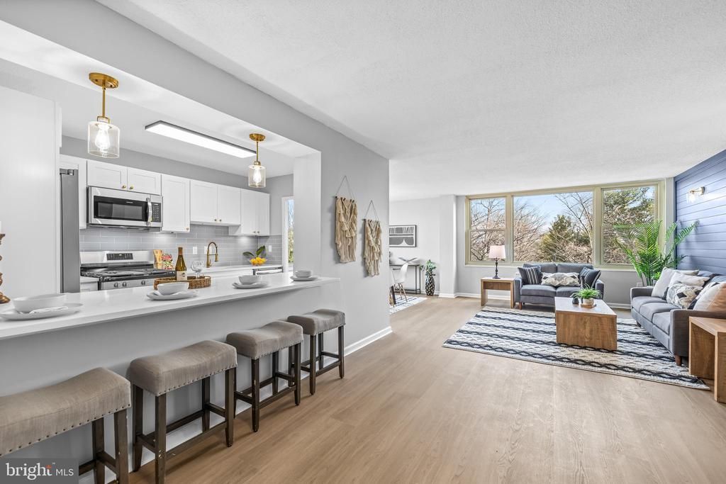 The condo fee includes water, heat, and air conditioning! Best deal in Roland Park!!! Fully renovated corner 2-bedroom, 2-bath condominium offering modern finishes, abundant natural light, and a thoughtful open layout. The updated kitchen features crisp white cabinetry, quartz countertops, stainless steel appliances and a peninsula with seating—perfect for everyday living and entertaining. Spacious living and dining areas are highlighted by wide-plank flooring, designer lighting, and a striking accent wall that adds warmth and character. As a corner unit, the home enjoys enhanced privacy and large windows that flood the space with natural light throughout the day. Both bathrooms have been completely renovated with contemporary vanities, upgraded fixtures, and clean, timeless tile selections. Generous room sizes, excellent storage, and a bright, airy feel throughout make this residence stand out. Located in a professionally managed elevator building with amenities including a pool, on-site staff, and common areas. Convenient Roland Park location with easy access to Hampden, shopping, dining, and major commuter routes. A turnkey corner-unit opportunity in a well-run community—just unpack and enjoy.