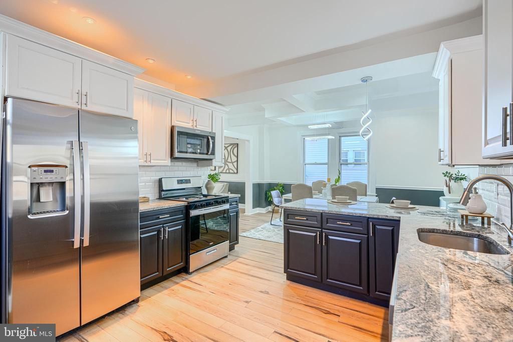 Welcome to 612 Woodbourne Avenue, a spacious and beautifully updated 4-bedroom, 2.5-bathroom home designed for comfortable living and effortless entertaining. Relax on the inviting covered front porch before stepping inside to a bright and welcoming living room, showcasing intricate ceiling details and modern lighting that add character and style throughout. The large gourmet kitchen is a true highlight, featuring granite countertops, stainless steel appliances, a stylish backsplash, and a breakfast bar with additional seating—perfect for casual meals or gatherings. A convenient powder room completes the main level. Upstairs, you’ll find three generously sized bedrooms and a luxurious full bathroom with a jacuzzi tub, creating a spa-like retreat. The fully finished basement offers exceptional additional living space, including a large recreation room, laundry area with washer and dryer, a full bathroom, and a fourth bedroom—ideal for guests or flexible living arrangements. Step outside to enjoy the spacious backyard with a deck perfect for entertaining, along with the added convenience of a garage. This home truly combines space, style, and functionality—don’t miss your opportunity to make it yours!
