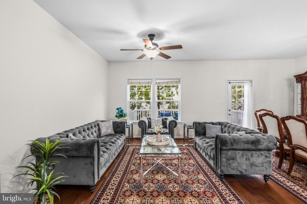 Luxury townhome living with the space and feel of a single-family home! This stunning stone-front residence features a 2-car garage and three fully finished levels designed for both comfort and entertaining. Beautiful hardwood floors flow throughout the main level and freshly painted from top to bottom- feels like new! The updated kitchen features refinished cabinets and opens to the living room and sun-filled breakfast area with direct access to the large deck. The elegant formal dining room lined with windows is perfect for hosting large gatherings. Upstairs, you’ll find three bright bedrooms, including a spacious primary suite with tray ceilings, a walk-in closet, and a private ensuite bath. Upper walk-in laundry room with built-in cabinets makes chores and organizing easy! The lower level offers flexible living space with direct access to the fenced backyard and paved patio—ideal for indoor-outdoor entertaining or creating secondary living quarters. Unbeatable location- just minutes to Lifetime Fitness and Virginia Gateway Town Center around the corner with restaurants, coffee shops, a movie theater, BJ’s, and more. Convenience meets luxury!