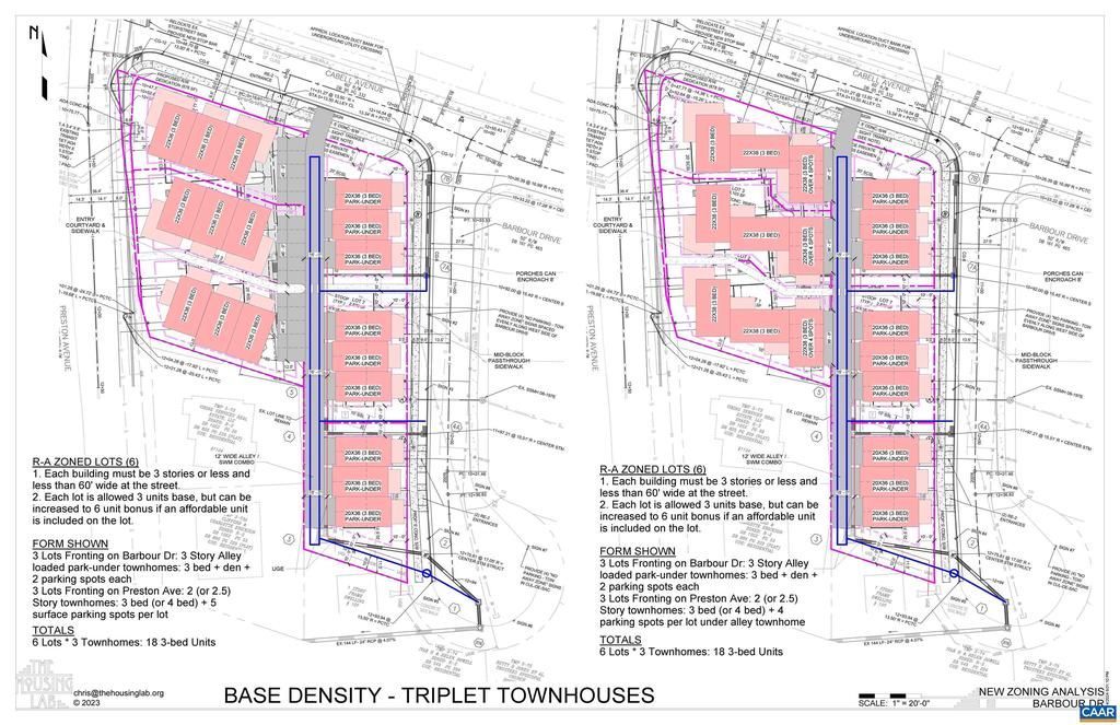 Opportunity to purchase 9 home sites located in the heart of Charlottesville! The portfolio consists of 9 continguous or near-continguous parcels zoned R-A (Low Density Residential). While "Low-Density" traditionally implied single family homes, the new "Charlottesville Zoning Ordinance could possibly permit up to 3 units per lot by-right, and up to 6 unites with affordability bonuses. The opportunity to develop a residential cluster of homes that meet the growing demand of walkable housing in the City of Charlottesville is waiting for a developer with a desire to build and make a significant impact in the local real estate market. A short walk to Washington Park and Recreaction Center with pool. Additional information available on approved plans.